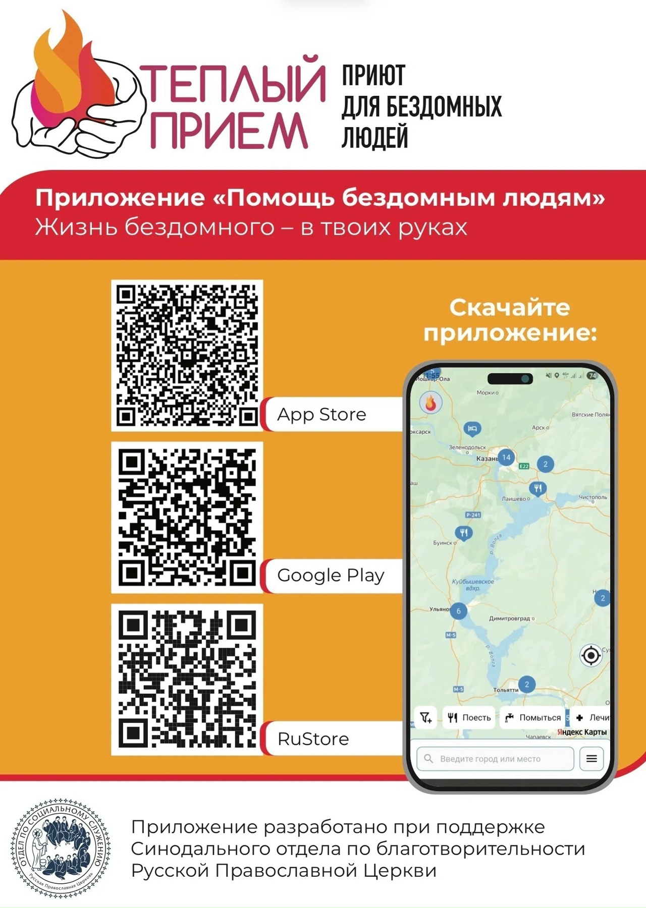 По благословению Святейшего Патриарха Московского и всея Руси Кирилла создано мобильное приложение «Помощь бездомным людям».