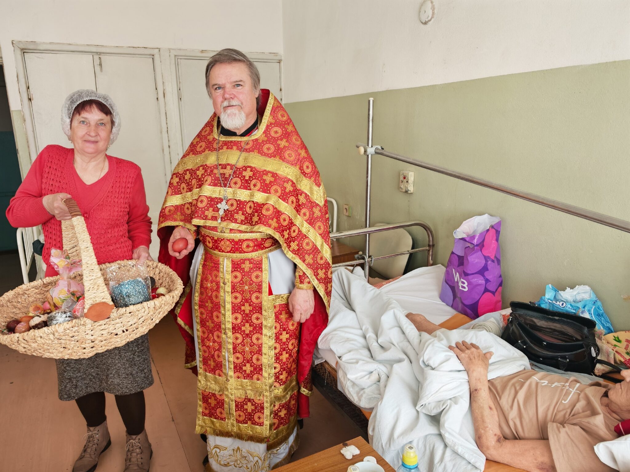 Настоятель Воскресенского кафедрального собора г.Кашина протоиерей Алексей Егоров посетил Кашинскую центральную районную больницу и дневное отделение ГБУ «КЦСОН» Кашинского муниципального округа, где поделился с пациентами и персоналом радостью о воскресшем Христе и подарил пасхальные подарки.
