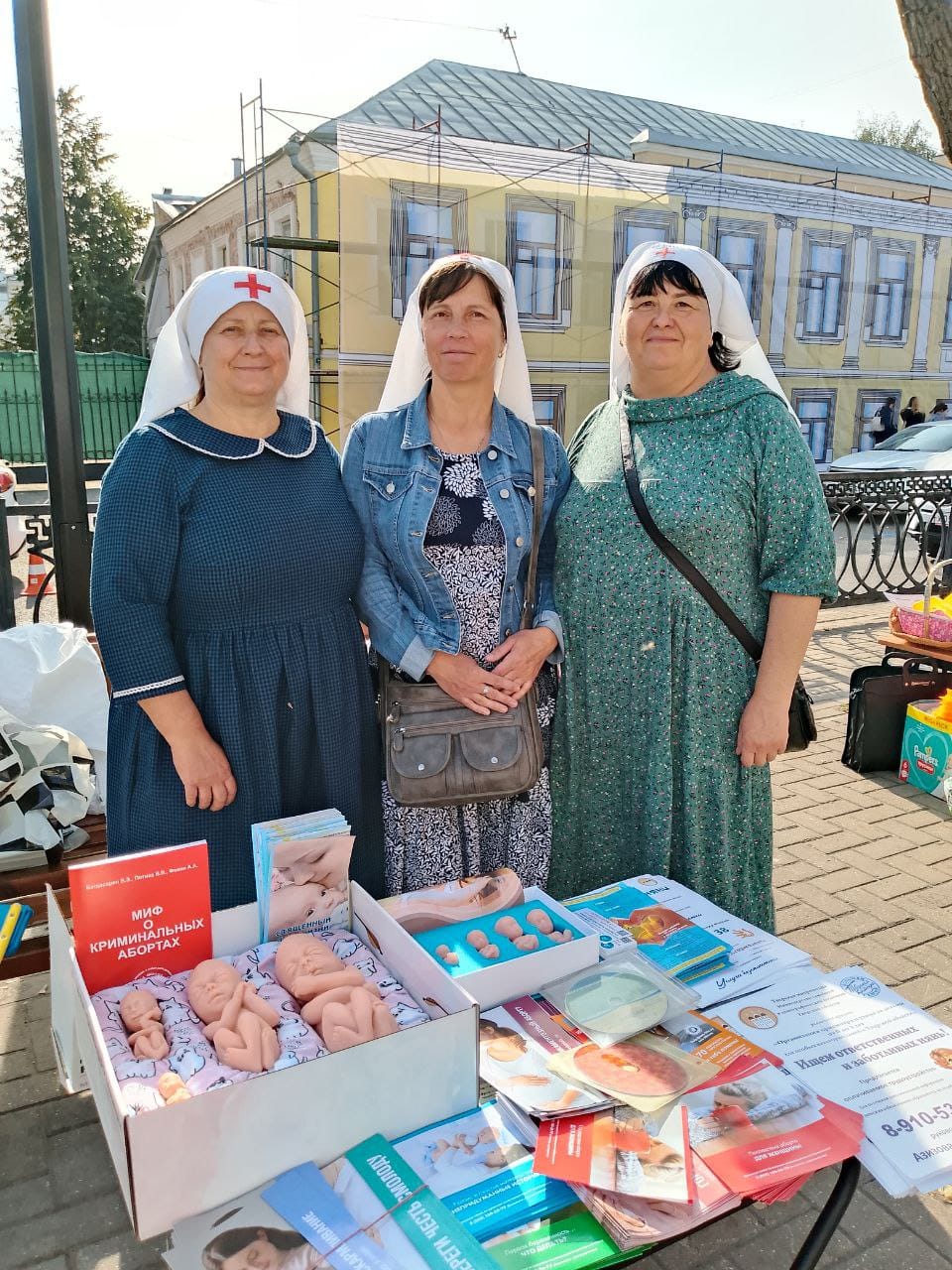 Сестры Общества милосердия во имя преподобноисповедника Сергия (Сребрянского) рассказывали о ценности человеческой жизни, показывали модели эмбрионов и раздавали буклеты о целомудрии и мерах поддержки семей с детьми, о последствиях аборта для здоровья женщины, о важности грудного вскармливания и о услуге социальной няни для семей с маленькими детьми.